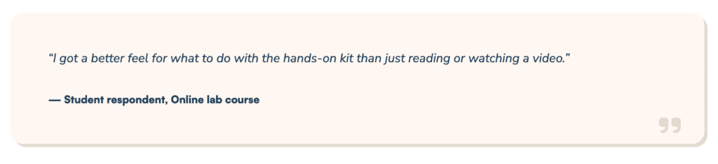 Affordability remains a central concern for students. The 2025 Annual Lab Report found that 71% of students believe the cost of hands-on lab kits aligns with the value they receive, particularly when compared to the full costs of attending on-campus labs.